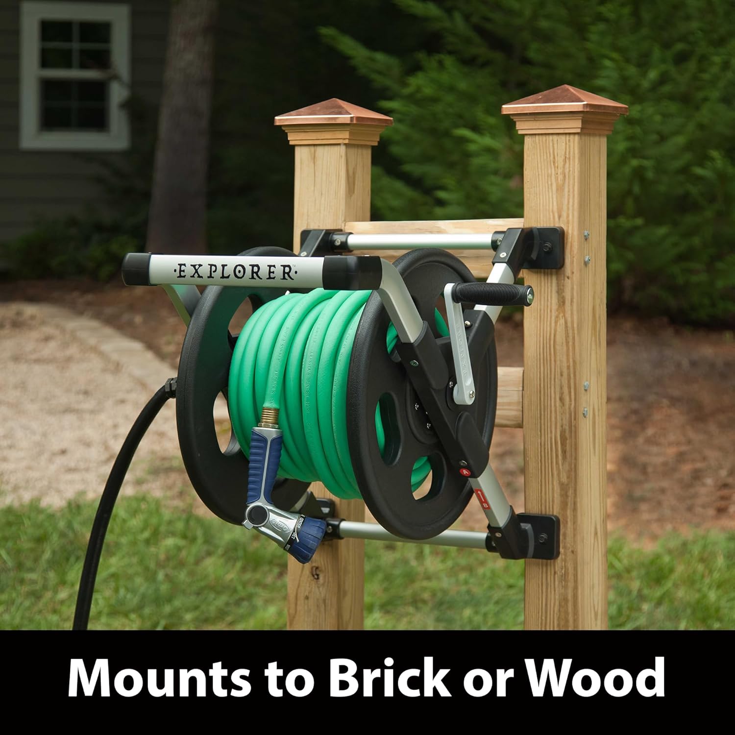 Liberty Garden 306 Explorer Floor or Wall Mount Hose Reel, Aluminum, Holds 150-feet of 5/8-Inch hose, Silver/Black
